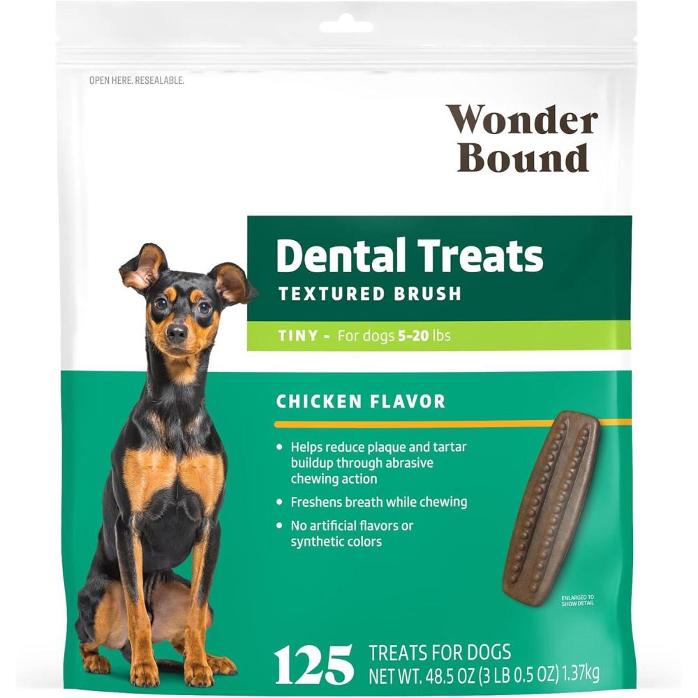 We understand that tiny dogs need treats that are just right for their small stature. Wonder Bound Dog Dental Treats are perfectly sized for small breeds, making them the ideal choice for daily chewing enjoyment by furry friends from 5 to 20 lbs.