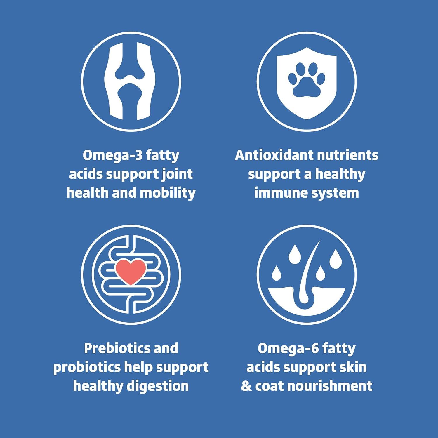Omega-6 fatty acids support healthy skin and coat; omega-3 fatty acids support joint health and mobility