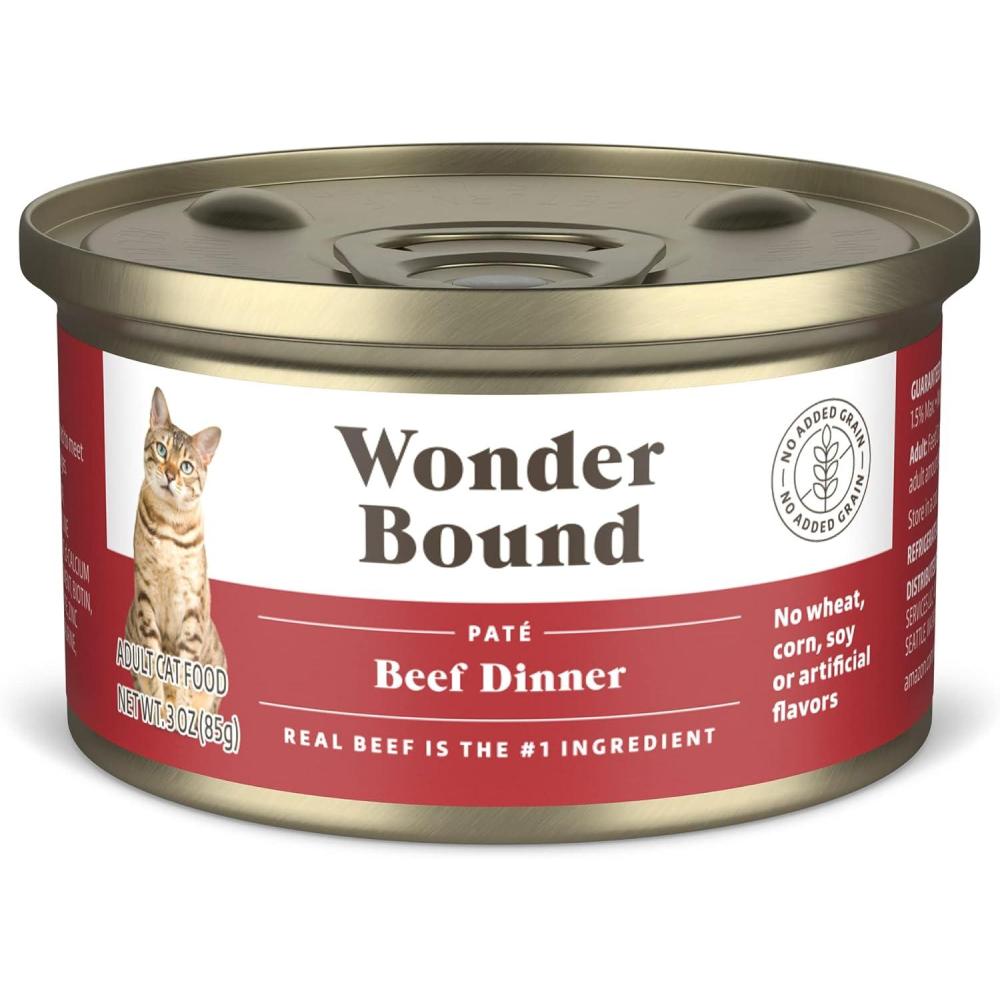 Amazon Brand – Wonder Bound Wet Cat Food, Pate, No Added Grain, Variety Pack (Beef/Chicken/Turkey & Giblet), 3 ounce (Pack of 24)(Beef)