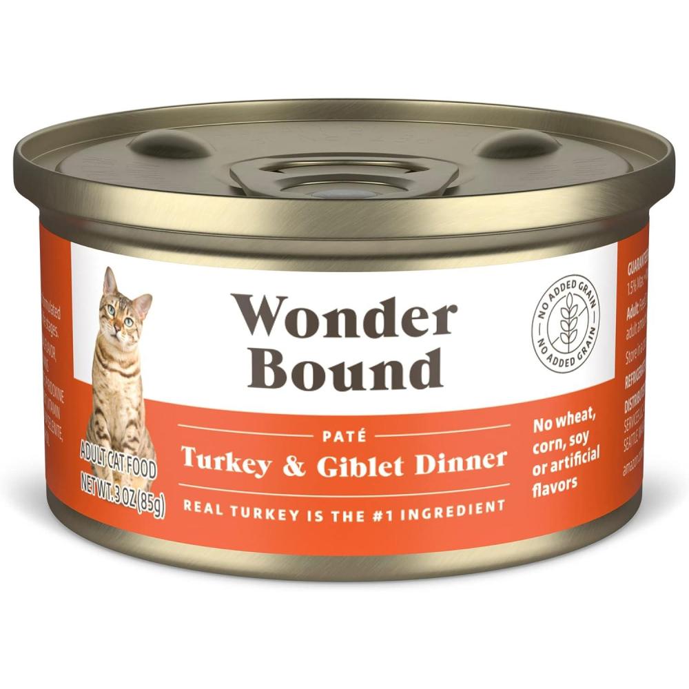 imageAmazon Brand  Wonder Bound Wet Cat Food Pate No Added Grain Variety Pack BeefChickenTurkey ampamp Giblet 3 ounce Pack of 24Turkey  Giblet