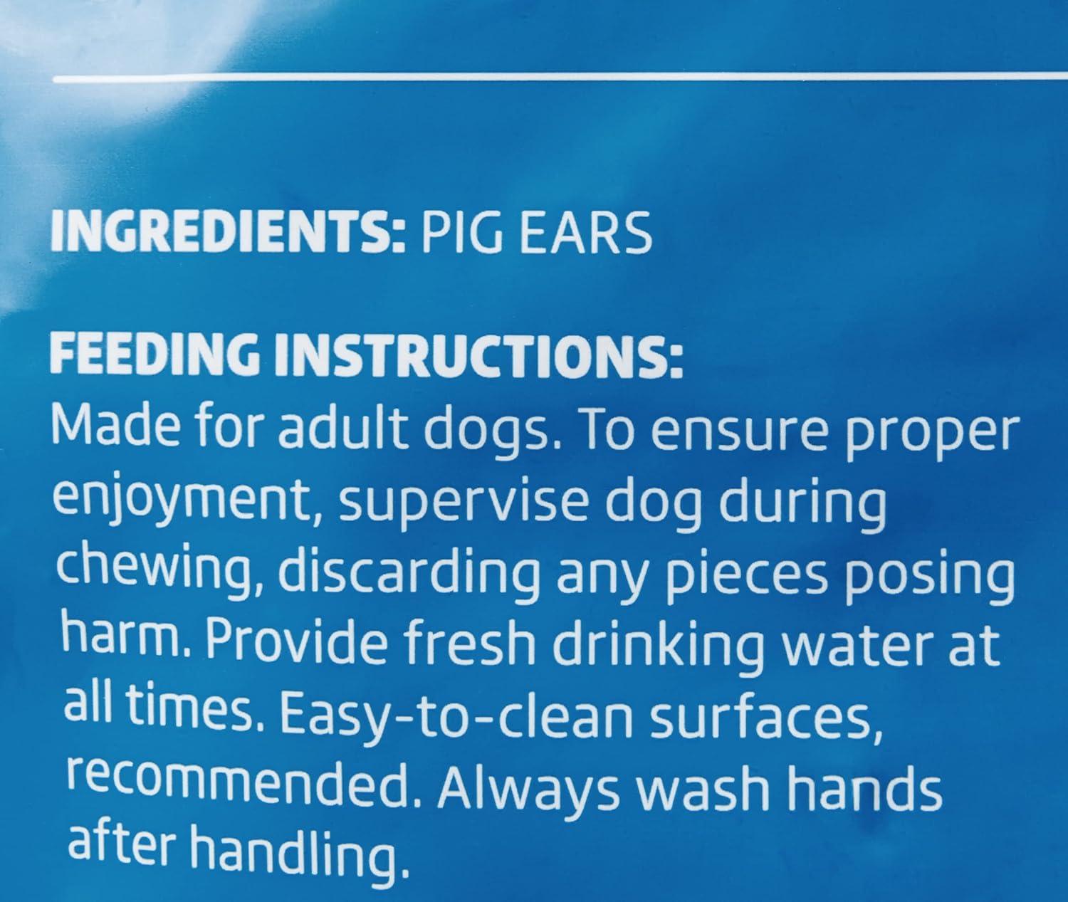 Includes 6 whole pig ears for dogs in a resealable pouch