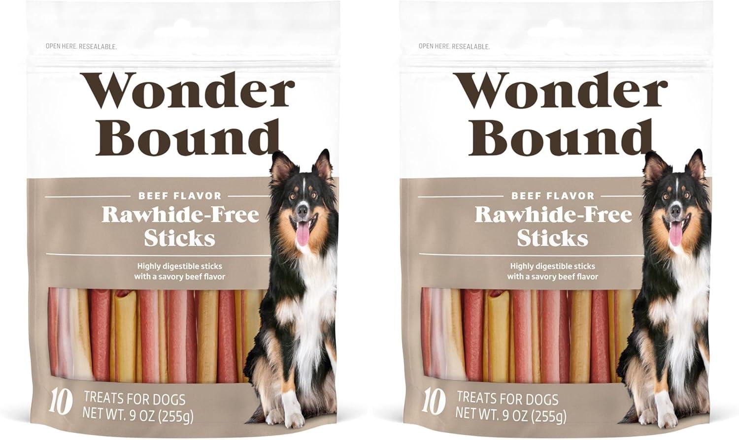 Wonder Bound Beef Flavor Dog Treat Sticks – 10 Count – Rawhide-Free, Dental Health Chews for Plaque & Tartar Control, Easy to Digest, Long-Lasting(Beef)
