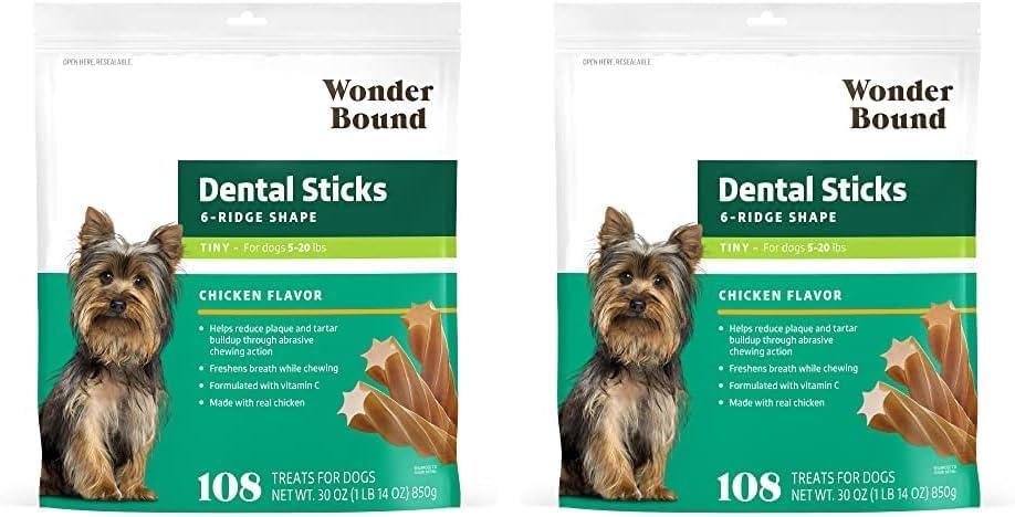 Wonder Bound Chicken Flavor Dental Sticks for Tiny Dogs (5-20 lbs), 6-Ridge Shape for Plaque & Tartar Control, Freshens Breath, Made With Real Chicken, 108 Count(Chicken)