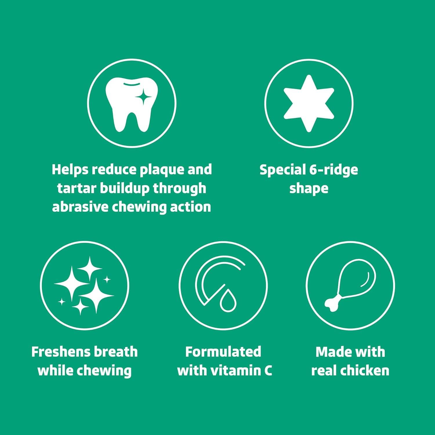 Each dental stick features a unique 6-ridge shape that’s engineered to effectively reduce plaque and tartar buildup. As your dog chews, these ridges provide an abrasive action that cleans their teeth, helping to maintain a healthy smile.